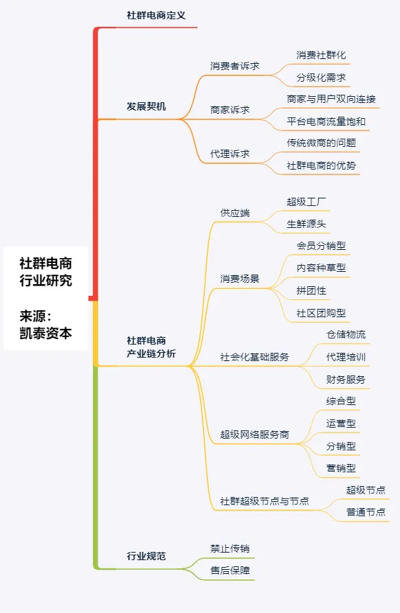 社群重构商业,在一个去中心化的智能网络时代,社群用户之间点对点的无限连接提高了信息传播的效率。在中心化平台电商遇到流量分发难、获客难、留存难的当下,社群电商无疑像一匹黑马,实现了一个又一个的“不可能”。光鲜背后,对于社群电商存在的问题和投资机会,凯泰资本秉承“研究驱动投资”的理念进行了研究分析。