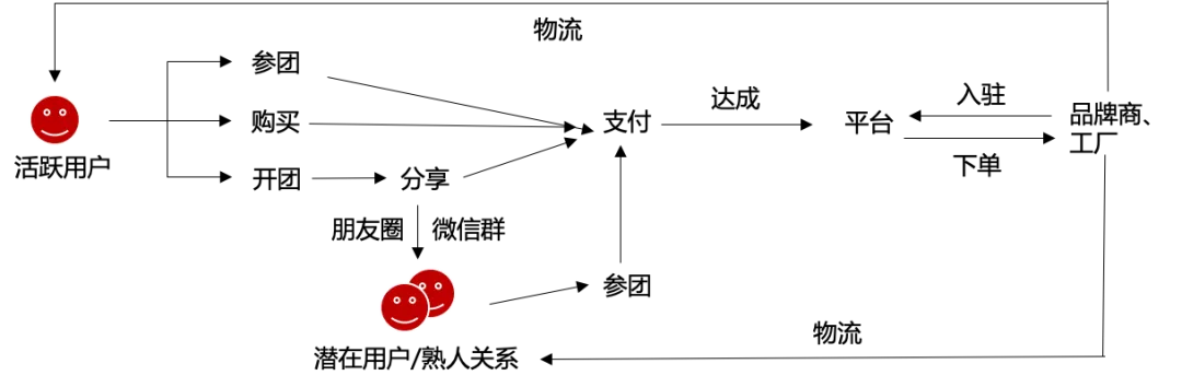 拼团型社群电商通过社交关系自主分享的方式,聚集至少2人组团,组团后以获取更低的商品购买价格。大多拼团型电商通过微信群或朋友圈发起拼团,跳转小程序完成交易,是以低价与熟人社交为核心激发消费者购买冲动的模式,前期获客成本低。拼团电商在供应端分为商家入驻制与平台集采制两种,主要区别是售后责任主体的不同,拼多多为前者,其本质是商品流通的创新。