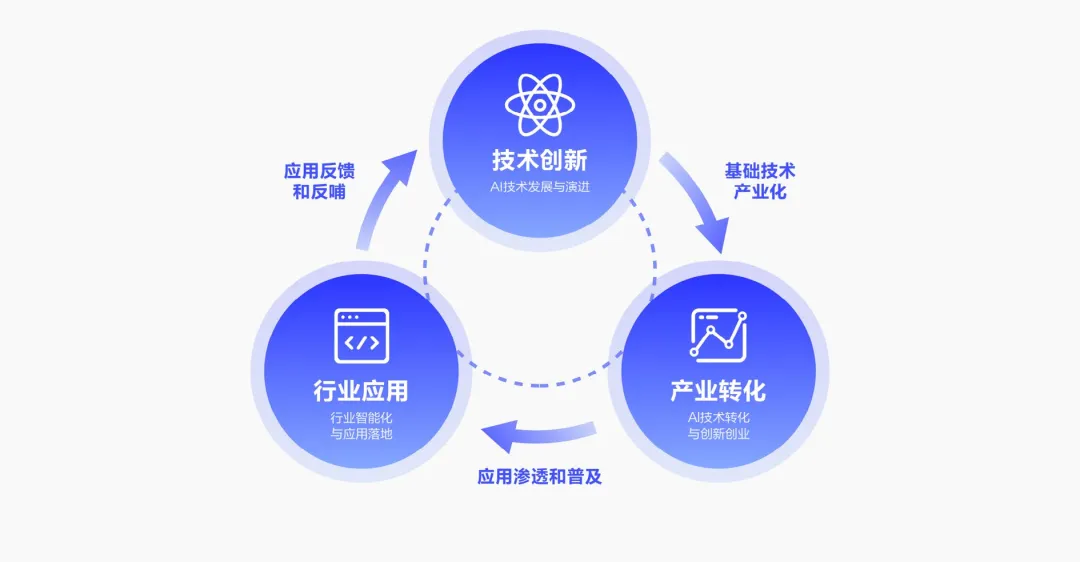 产业生态:深化产业链纵向协同与横向生态共建,推动核心技术创新与应用场景开放,培育繁荣的AI生态体系。