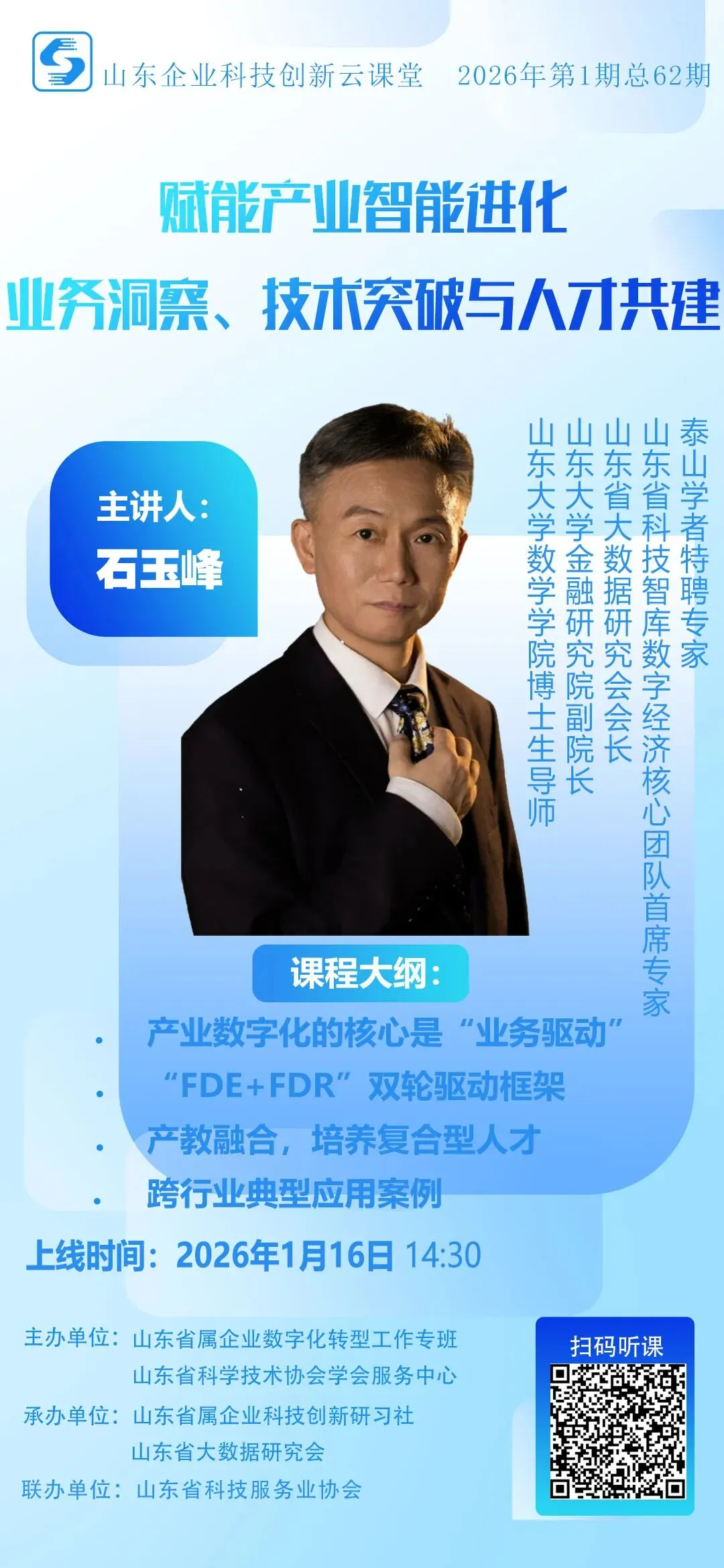 泰山学者、山东省智库专家数字经济核心团队首席专家、山东省大数据研究会会长、山东大学金融研究院副院长、博士生导师石玉峰教授