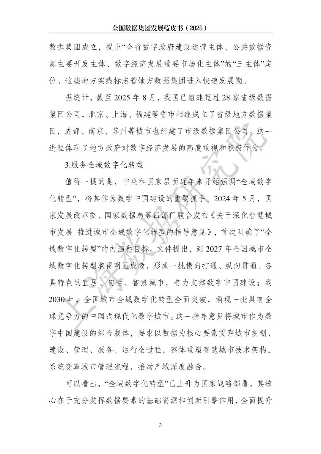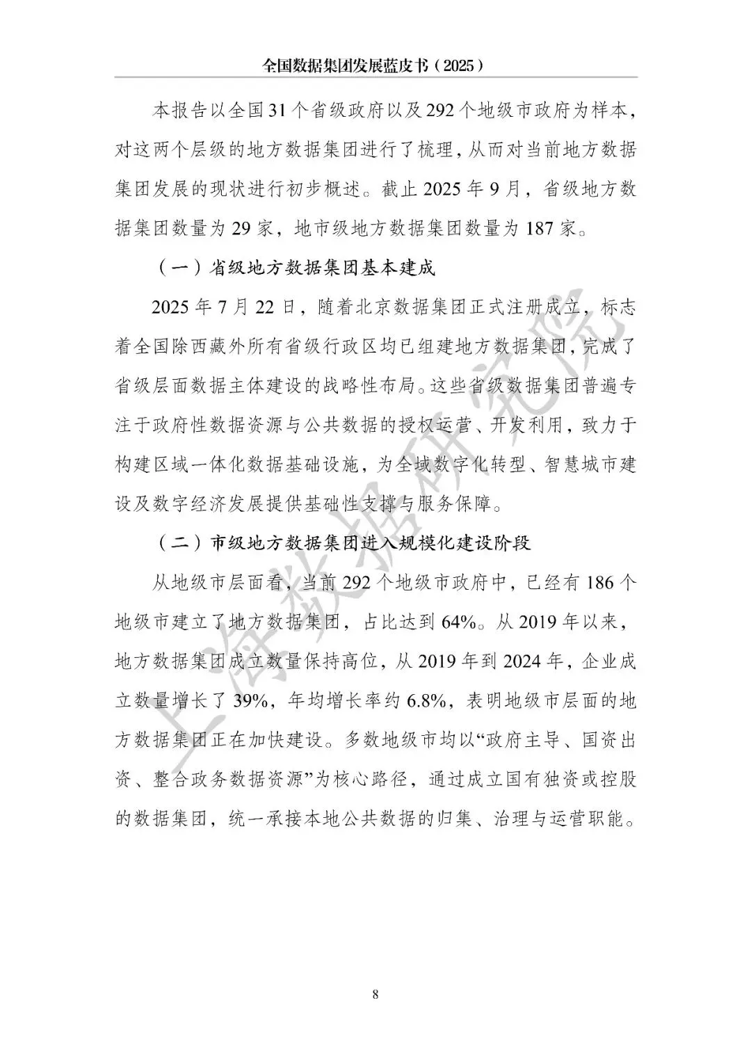 上海数据研究院发布的《全国数据集团发展蓝皮书(2025)》,系统梳理了我国地方数据集团的发展现状、组织演进、业务模式、核心挑战与未来竞争力构建路径。