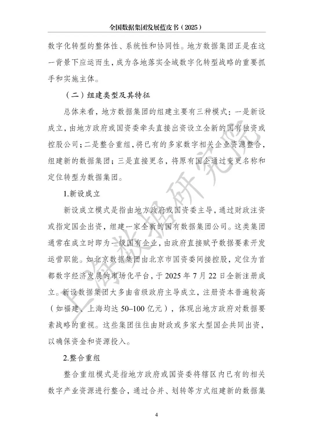 全新成立模式由地方政府或国资委主导,通过财政注资组建全新的国有数据集团公司。如北京数据集团由北京市国资委间接控股,于2025年7月22日全新注册成立,定位为首都数字经济发展的市场化平台。