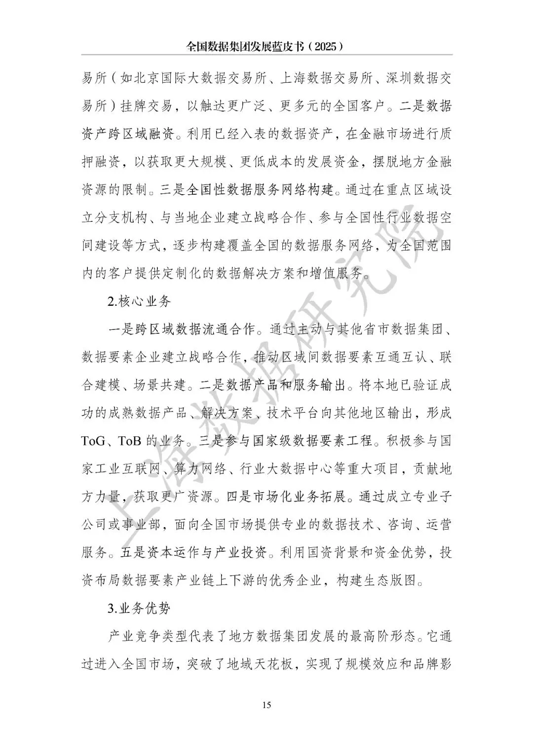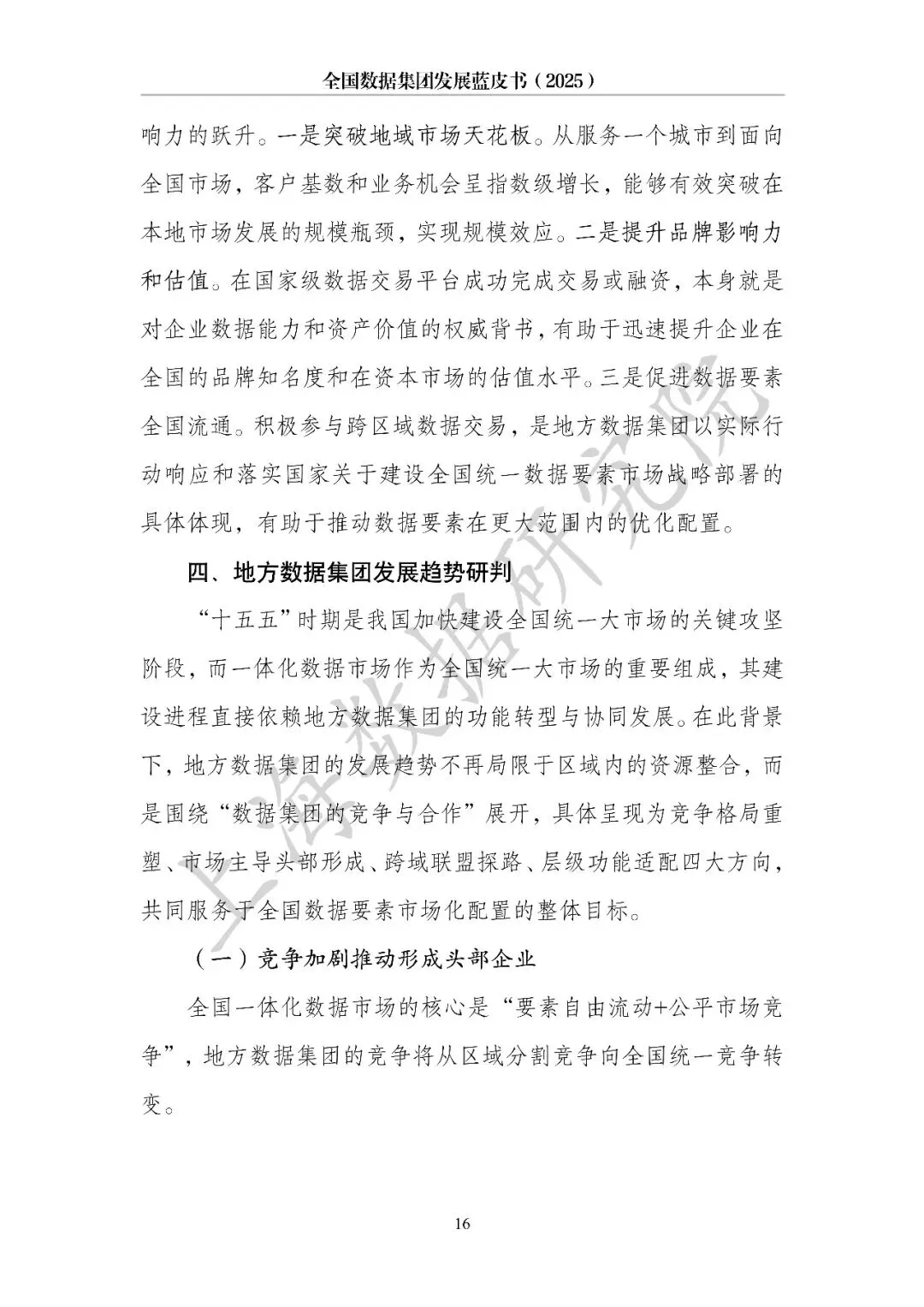 产业竞争型定位全国市场,开展跨区域数据产品流通、全国性数据服务网络构建,致力于成为在全国数据要素统一大市场中具备核心竞争力的市场主体。这类集团代表了地方数据集团发展的最高阶形态,通过进入全国市场,突破了地域天花板。