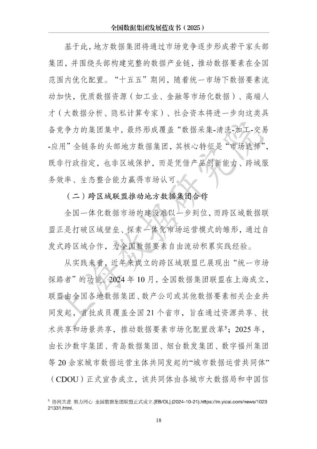 跨区域联盟成为打破区域壁垒、探索一体化市场运营模式的雏形。2024年10月,全国数据集团联盟在上海成立,首批成员覆盖全国21个省市;2025年,“城市数据运营共同体”正式成立,聚焦破解单城数据场景碎片化、应用低效化等瓶颈。