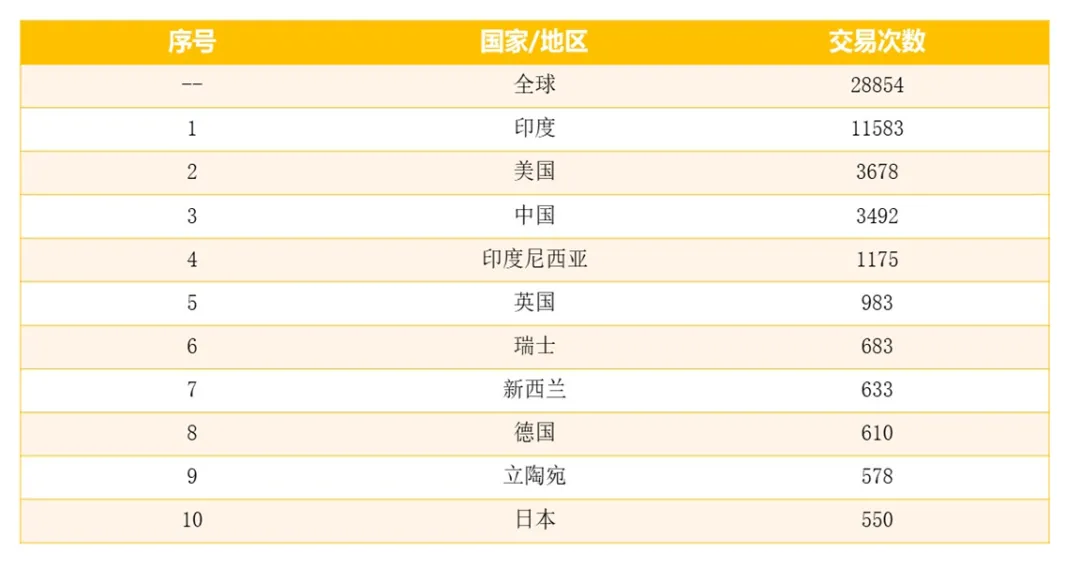 图表5:2021年1-6月全球呼吸机及相关产品进出口交易次数