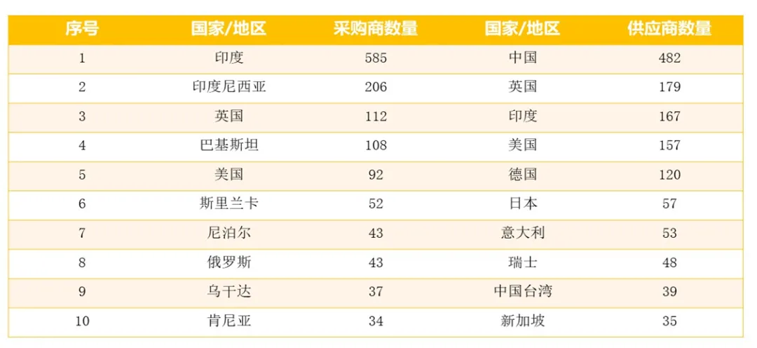图表7:2021年全球呼吸机采购商与供应商数量TOP10国家