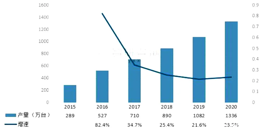 雾化器的主要作用对象为哮喘患者,从细分领域来看,相对于传统的服药治疗哮喘等呼吸道的疾病的手段,医用雾化器将药液雾化成微小颗粒,药物通过呼吸吸入的方式进入呼吸道和肺部沉积,从而达到无痛、迅速有效治疗,属于二类医疗器械。其中2020年中国医用雾化器产量约为1336万台,同比增长23.5%。