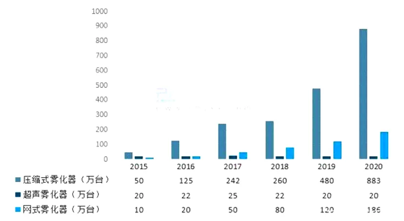 图表12:2015-2020中国各类医用雾化器需求量