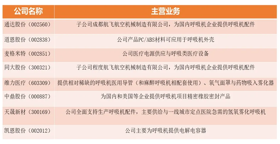 图表14: 国内部分呼吸器械原材料供给公司