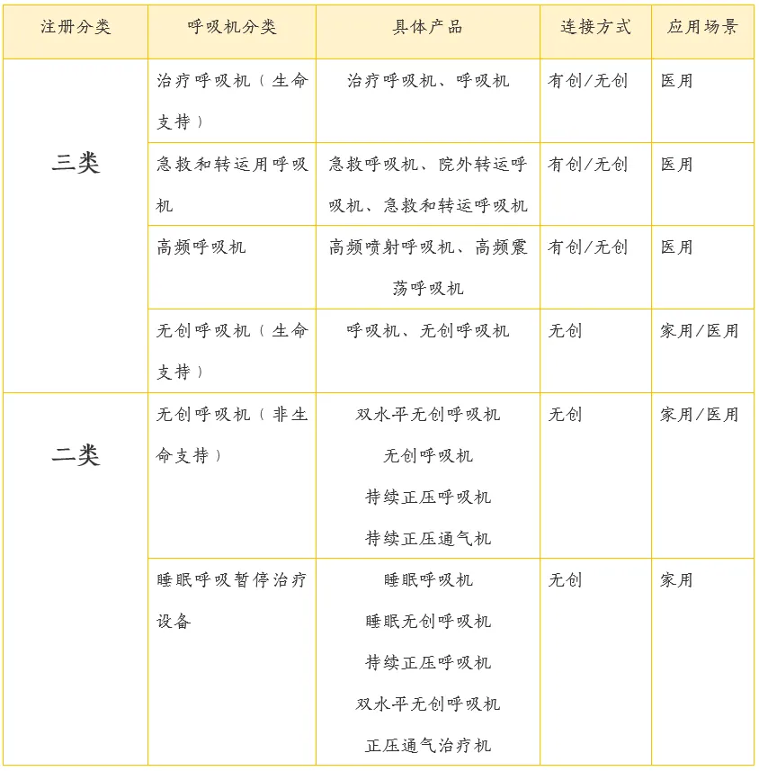 图表18: 呼吸机分类与应用场景关系(按注册分类)