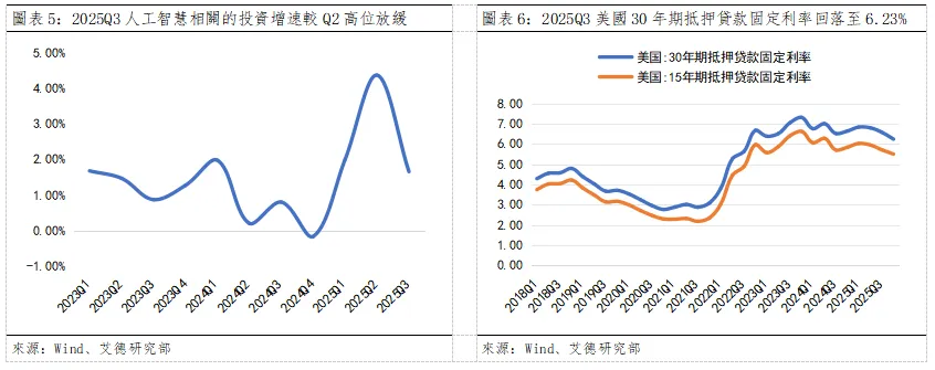- Q3-Q4的“揚”:AI投資落地與消費回暖:2025Q3美國實際GDP年化同比增速為4.30%,創下兩年來最快增速,主要得益於消費者支出尤其是高收入人群消費以及AI投資的擴張。美國商務部數據顯示,三季度美國消費者支出年化增長率升至3.5%,已成為經濟增長的核心引擎。其中,全美收入最高的10%人群的支出占比接近全美總消費支出的一半。而人工智慧相關的投資增速雖較二季度的高位放緩,仍具備高度貢獻份額。2026年AI有望從研發轉向應用,花旗大幅上調對科技巨頭的AI資本開支預測,該年度的AI資本開支預測從4200億美元上調至4900億美元,同比增長24%,顯著高於目前20%的市場共識;到2029年的累計資本開支預測從2.3萬億美元提升至2.8萬億美元。隨著AI資本開支進入密集期、降息帶動房貸利率回落,消費與投資雙引擎將同步發力,預計2026年下半年經濟增速有望實現回升。