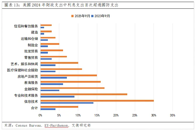 財政政策:短期經濟刺激與長期財政失控的核心矛盾。2023-2025年的緊縮週期已實現“通脹降溫而經濟未崩”的核心目標,通脹韌性已轉化為穩定性。就業市場呈現“溫和調整而非崩潰”的健康特徵。2026年經濟增速的階段性差異源於兩大因素:關稅政策不確定性的影響下,製造業企業補庫存需求尚未完全釋放。而隨著AI資本開支進入密集期、降息帶動房貸利率回落,消費與投資雙引擎將同步發力,預計2026年下半年經濟增速有望實現回升。