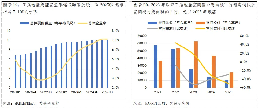 CBRE在《2025年第三季度美國工業地產報告》中預測,2026年初隨著新建設施投放放緩及企業租賃需求增加,工業地產空置率將進一步下行。