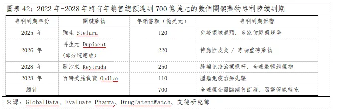 核心投資邏輯:並購浪潮+ AI 革命 + 降息週期三重驅動。1)行業基本面強勁復蘇:並購浪潮席捲,專利懸崖催生需求。2025年醫藥並購金額同比增30%,大型藥企財務雄厚,持續收購管線豐富的中小型生物科技公司。根據GlobalData等數據統計,2025-2028年全球專利懸崖高峰期將創造前所未有的並購需求。