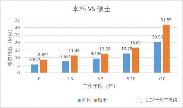 首先是薪资上,电气专业研究生比本科生薪资高出30%-50%是常态,工作的时间越长,薪资差异越明显。