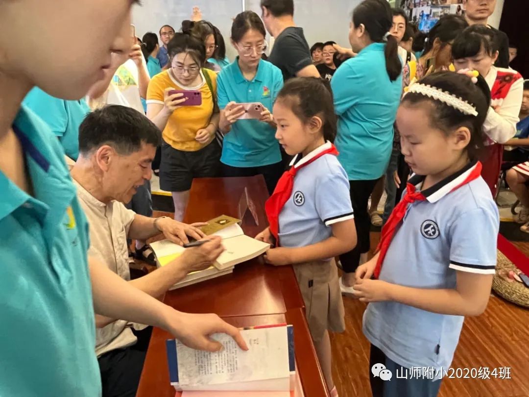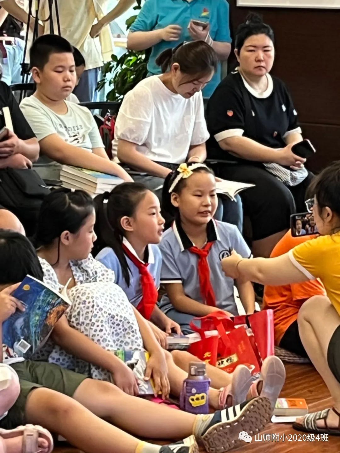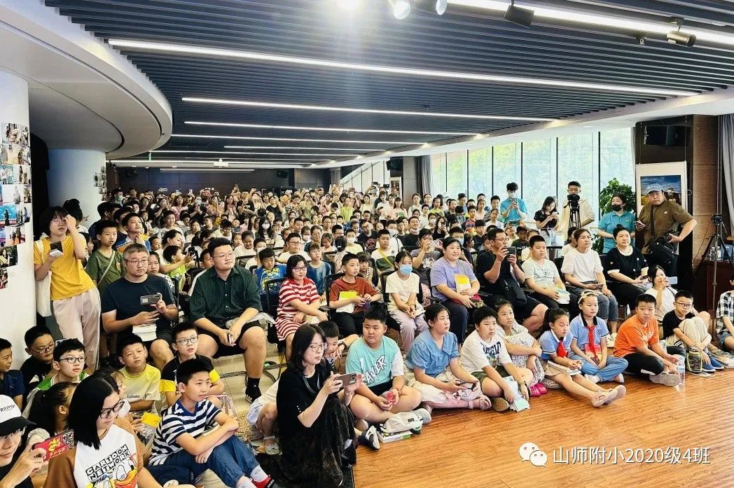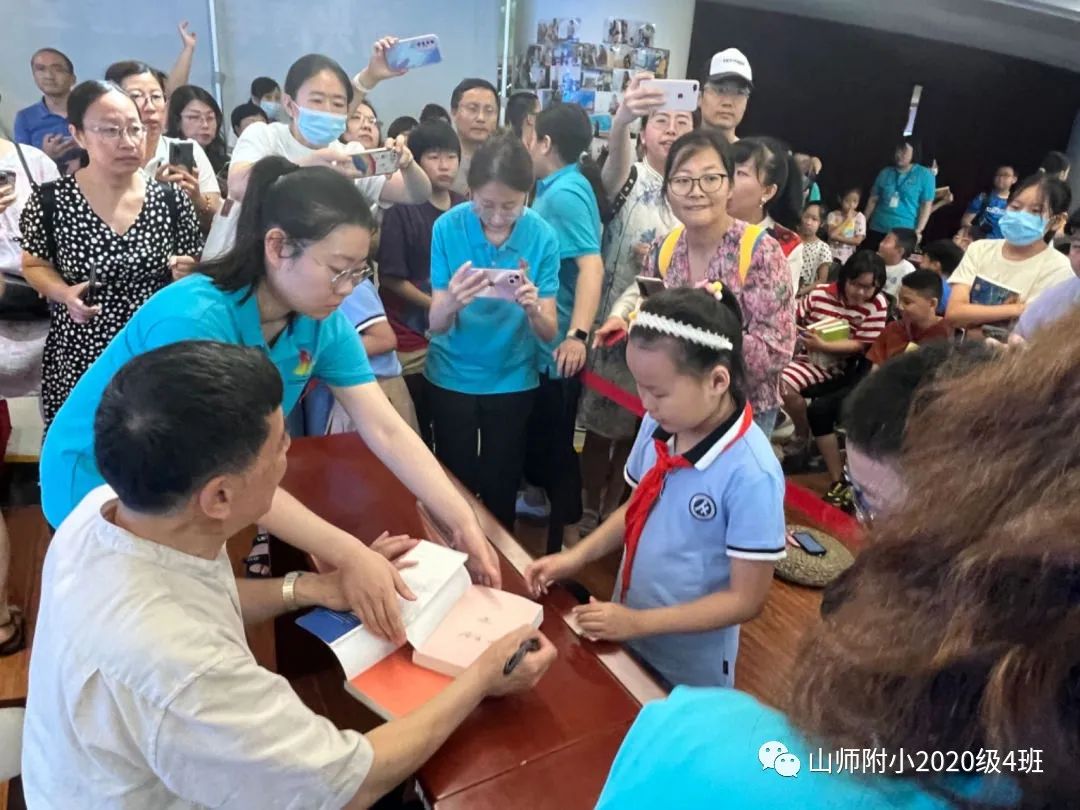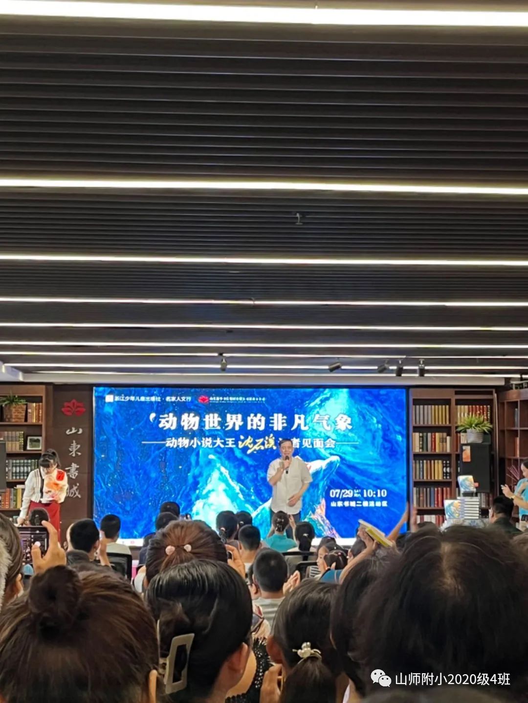 在第31届全国图书交易博览会期间,山东师大附小三(四)中队雏鹰小队队员来到交流现场,与作者分享读书体验。沈石溪在动物小说中倡导“生态道德”和“生命意识”,尊重个体生命价值,鼓励直面困境,勇敢拼搏,为当代少年儿童的人生观和价值观注入了向上、向善、向美的力量。