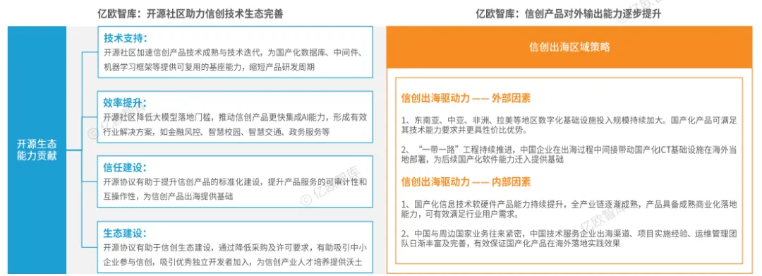 海外区域数字化建设需求扩大,国内信创企业产品能力提升、服务渠道完善,内外因素互为助力,驱动信创出海成为信创产业新热点。随着国内信创产业链逐步完善,海外服务渠道日渐丰富,具备成熟商业服务能力的国产化技术产品已逐步在东南亚及"一带一路"区域落地。