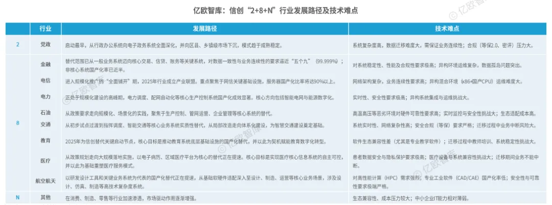信创行业发展现状总结:以“2+8+N”规划布局为核心,细分行业发展路径分化