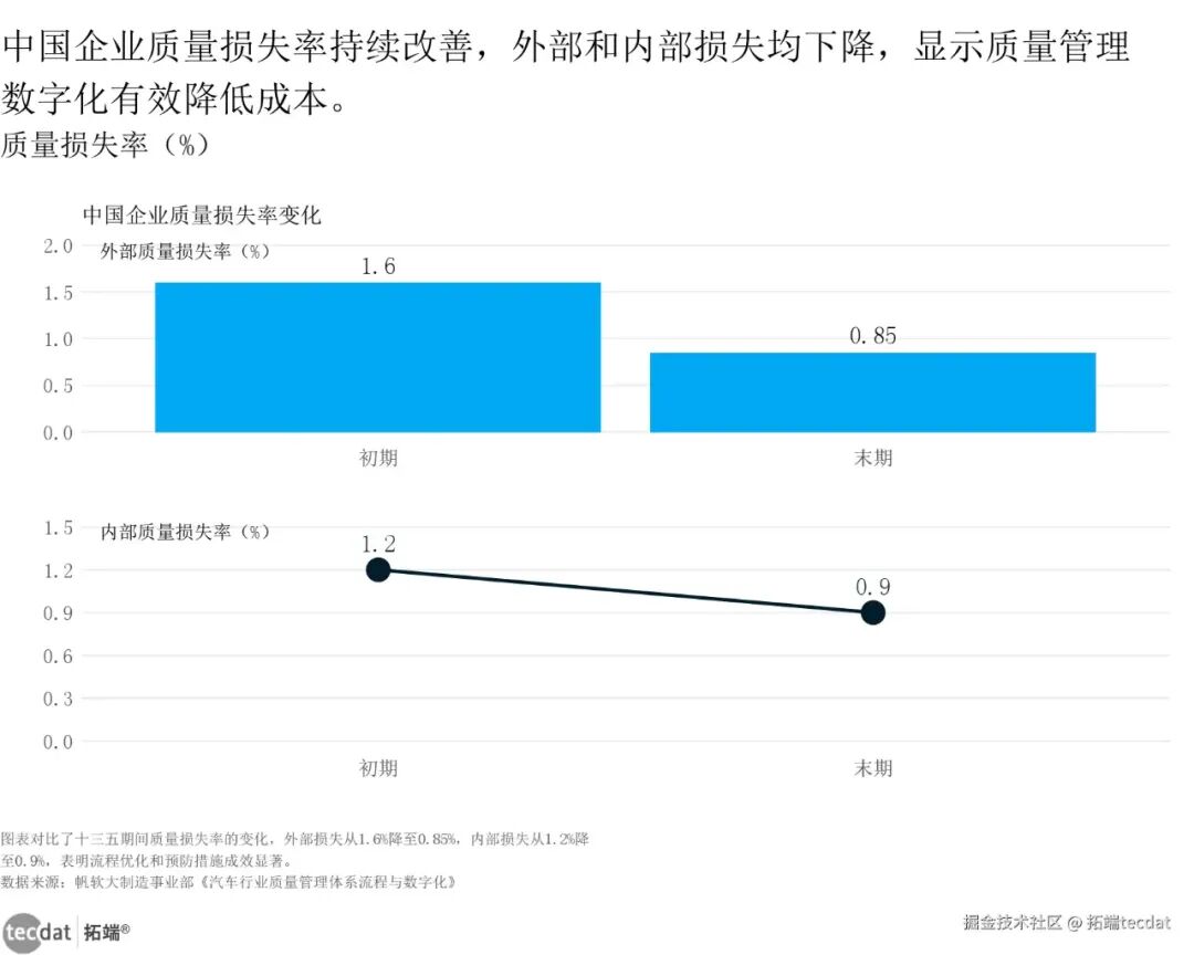 质量管理等级缺陷率瀑布图表13图表数据及PDF模板已分享到会员群3秒解读:中国汽车企业质量管理水平稳步提升,数字化工具是核心驱动力,质量损失率差距逐步拉大。对应人群行动建议:车企需在2025年内引入数字化质量管控系统,重点覆盖冲压、焊接等关键工序;零部件供应商需建立“质量追溯体系”,满足主机厂的全流程追溯要求;监管机构可推广头部企业的先进经验,制定“汽车行业数字化质量管理标准”。