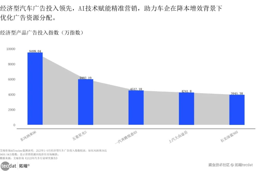 汽车行业广告投入虽同比下降25.4% (2025年1-9月累计31.4亿),但“钱要花在刀刃上”——营销资源加速向移动端集中,百度凭借11亿+移动互联网用户,成为车企的核心投放平台,其PC端、移动端汽车广告主数量均位列前三,AI营销工具(如精准人群定向)可帮车企降低30%的获客成本。头部车企已形成“共识”:减少传统户外广告投入,将60%以上的营销预算投向“移动端+AI工具”,通过AIGC生成个性化内容,精准触达“新能源意向用户”“高端车型用户”等细分圈层。