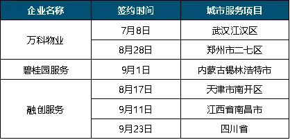 城市服务是一个全新的管理模式,目前进入该领域的还以头部企业为主。2020年,万科物业、碧桂园服务、融创服务在城市服务方面均有收获。以融创服务为例,8月17日,融创物业服务集团有限公司与天津市南开区政府签订战略合作签约。此举不仅是南开区政府在高端物业服务行业全区部署重要举措的一项重大成果,也将是一次政府与企业共同推动“城市服务物业化”的强强合作与战略探路。