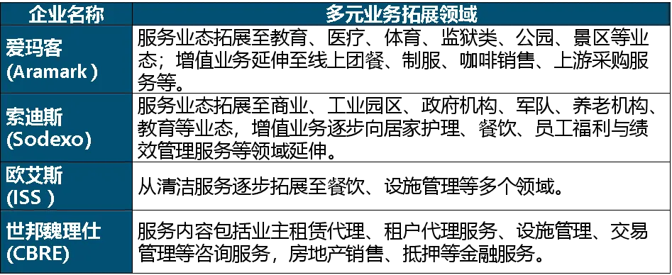 国内外物业服务企业新的发展动向主要体现在:1)服务范畴:包括不仅限于住宅物业的商办、园区、公众物业等业态,城市服务、国企后勤服务等;2)服务内容:不局限于基础物业服务,还包括基于社区“场”提供的各类创新增值服务;3)服务工具:呈现科技化、智能化、平台化特点;4)服务价值:为业主、合作商、社会创造价值。