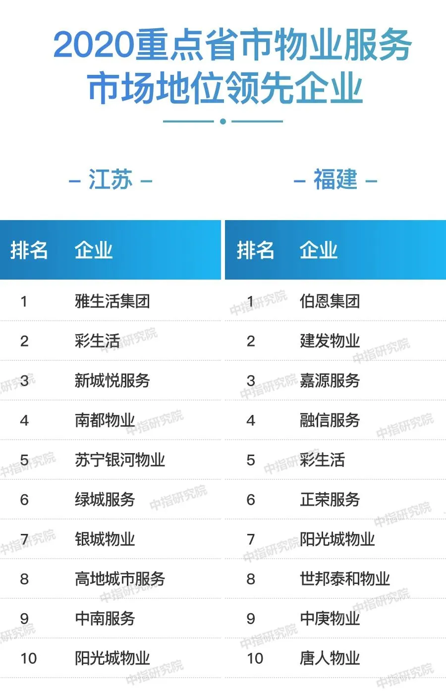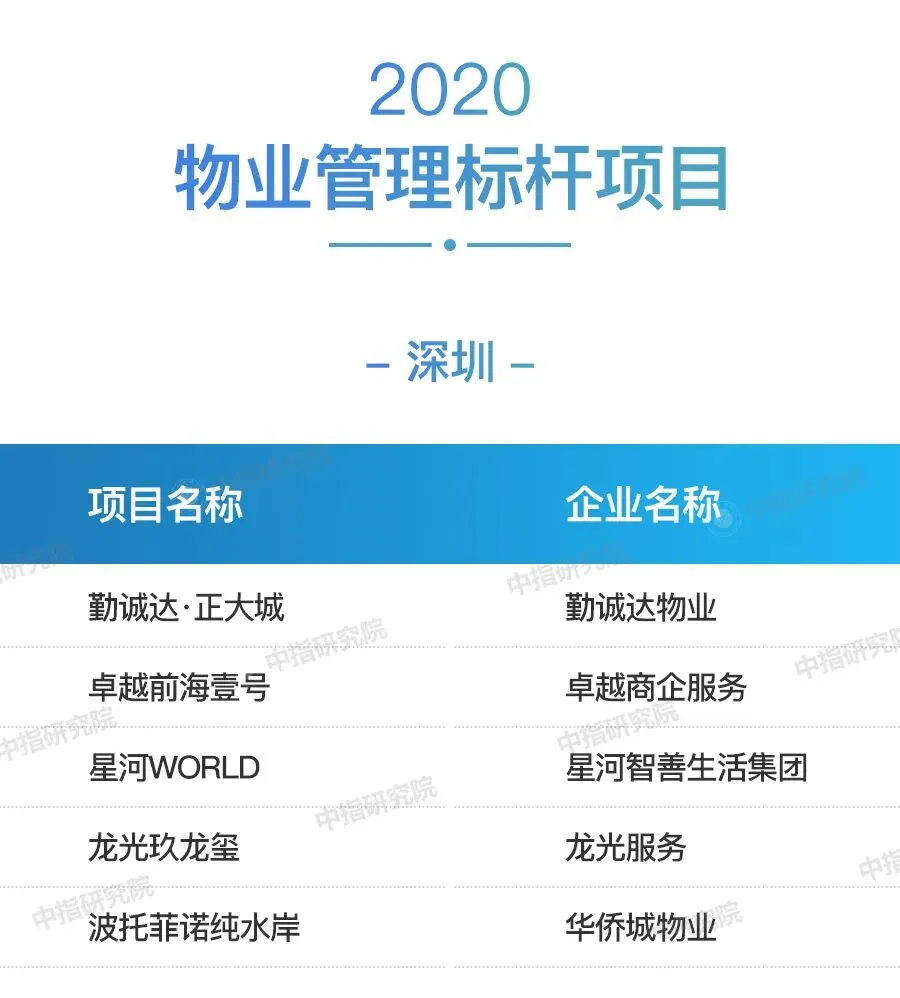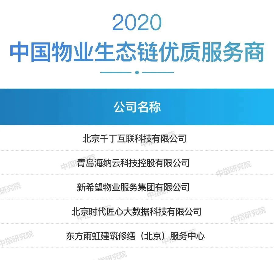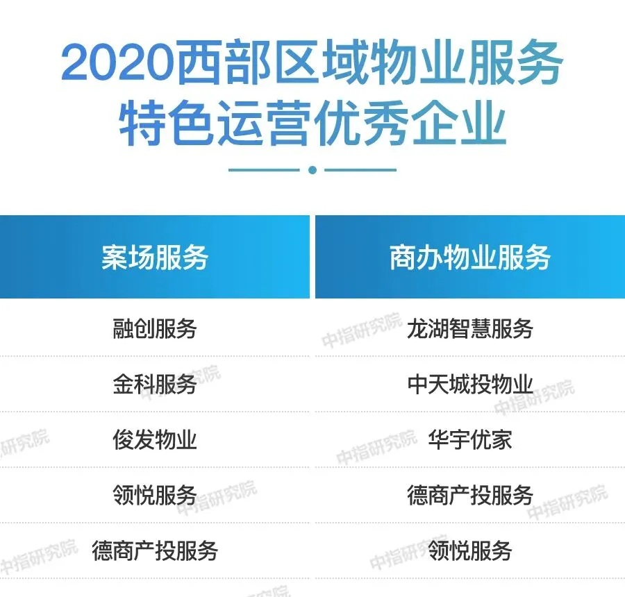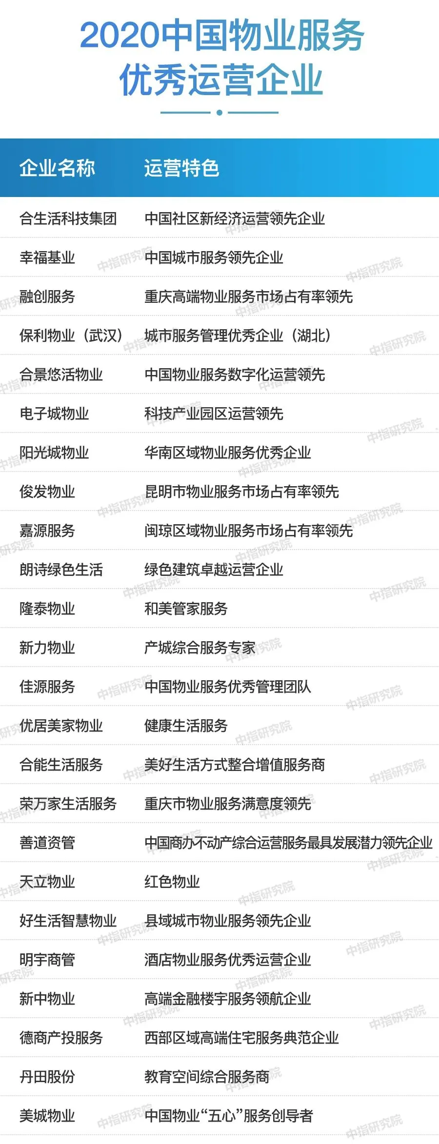 2020年12月3日,中指研究院在“2020中国房地产大数据年会暨2021中国房地产市场趋势报告会”上,重磅推出《中国房地产市场2020总结&2021展望》,甄选物业服务市场地位领先、满意度领先及特色运营等企业,分析总结其在运营模式、服务管控等方面的经验,为物业服务企业的健康、高速发展提供借鉴。