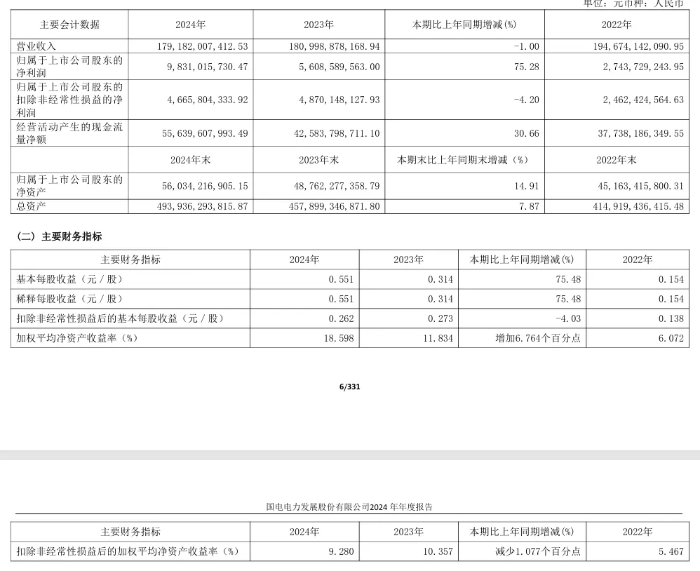 营收与利润:2024年营收1791.82亿元(同比-1.00%),归母净利润98.31亿元(同比+75.28%);2025年上半年营收776.55亿元(同比-9.52%),扣非归母净利润34.10亿元(同比+56.12%),主要受益于燃料成本下降与新能源盈利提升;