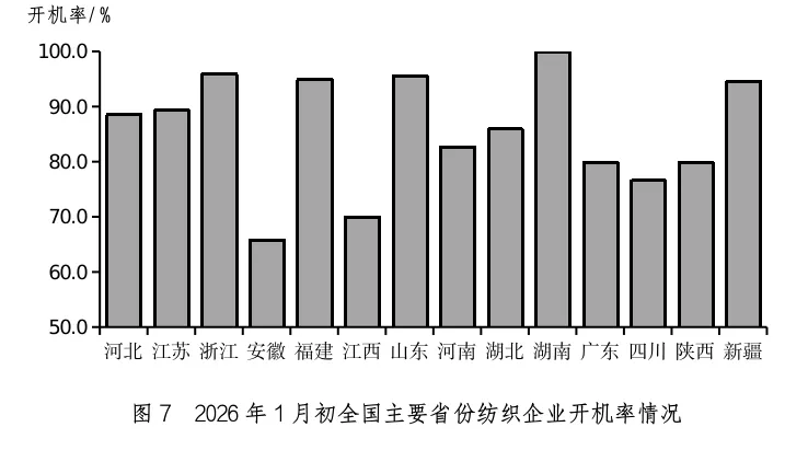 20261月初,被调查企业开机率为86.9%,环比上升4.1个百分点,同比上升19.4个百分点湖南、山东、新疆、福建、浙江平均开机率达90%以上