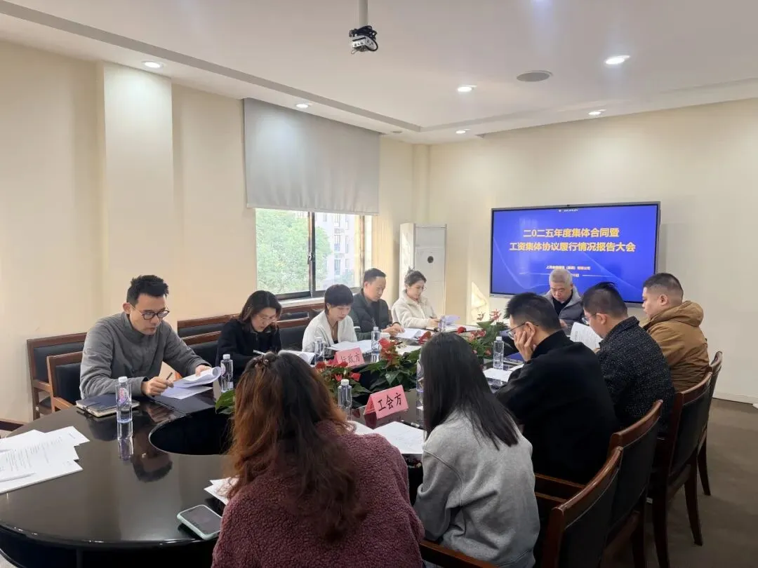 1月15日上午,公司召开了2025年度集体合同暨工资集体协议履行情况报告大会,会议由公司常务副总经理曾峥代表党组织主持。工资集体协商行政方首席代表陈沈慧、工会方代表林亚樱等双方代表共计10人参加了会议。