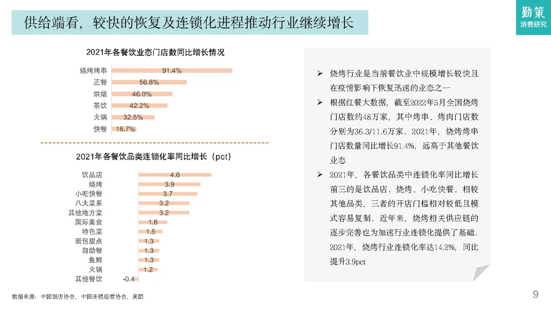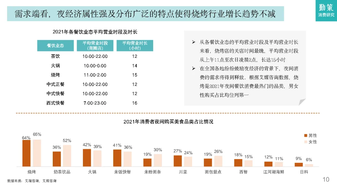 近年来,中国烧烤行业的地域分布也发生了一些变化。从市场占据率来看,东北地区曾是烧烤行业的主导力量,但如今南北方发展趋势呈现并驱态势。在线烧烤门店数量排名前十的城市中,北方城市占据了四个席位,主要集中在东北地区;而南方城市则占据了六个席位。在烧烤订单量增长最快的前十个城市中,南方城市占据了九个位置。