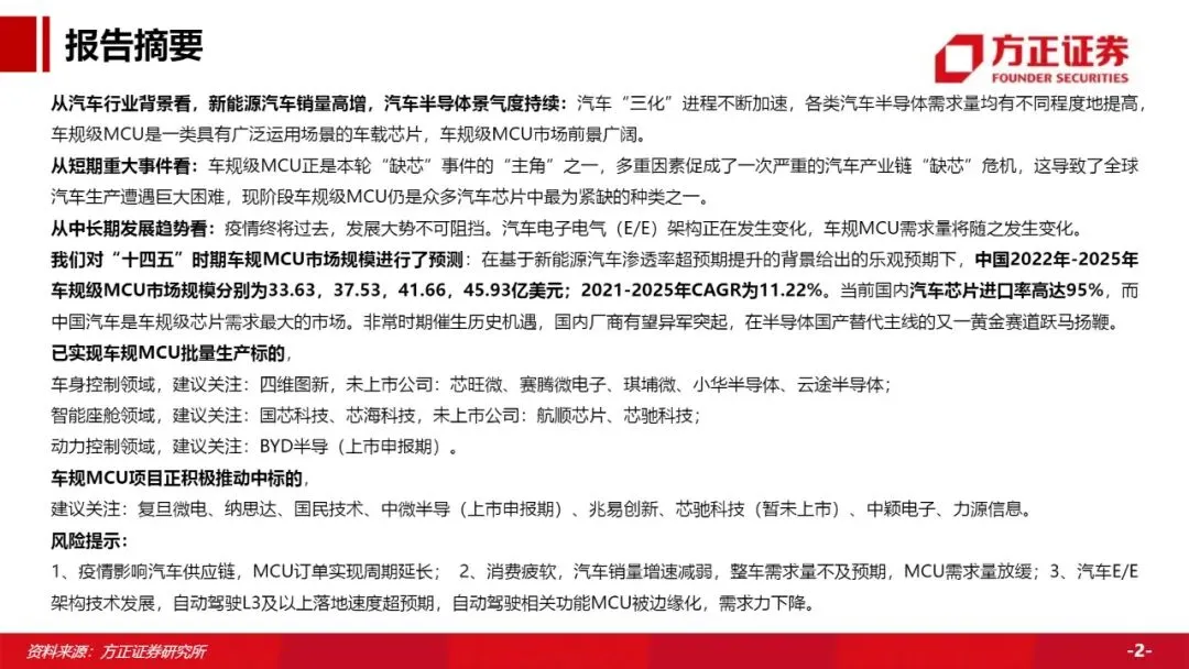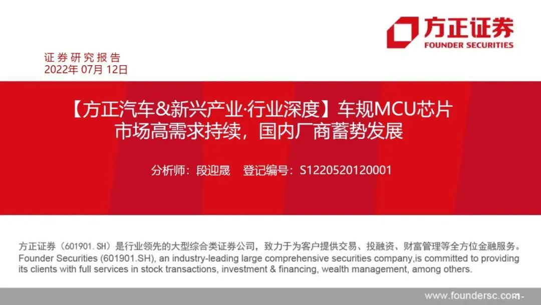注:本文来自方正证券研究所2022年7月12日发布的报告《车规MCU芯片市场高需求持续,国内厂商蓄势发展》。欲获取该报告,请扫描下方堂姐的微信二维码(微信号:shttangjie)。