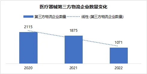 根据国家药监局数据显示,2020年到2022年,我国医疗器械第三方物流企业数量递减,行业集中度有所提升。究其原因,大中型企业更倾向通过兼并、收购等方式扩大规模;部分企业因无法应对行业激烈的竞争,自然退出市场。