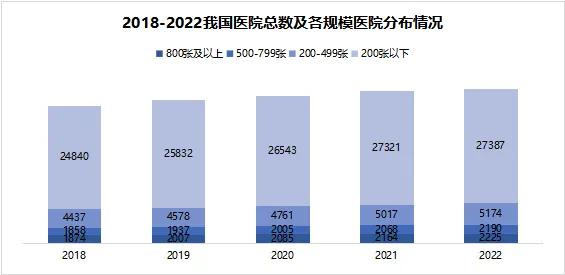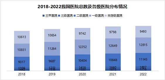 根据国家卫健委发布的《全国卫生健康事业发展统计公报》显示,近五年,我国医院总数在不断攀升。值得关注的是,从医院等级分布情况来看,二、三级医院数量在有序增长,三级医院数量多达3523家,其中三甲医院达1716家。医疗器械需求随之增多,利好医疗器械行业的发展。