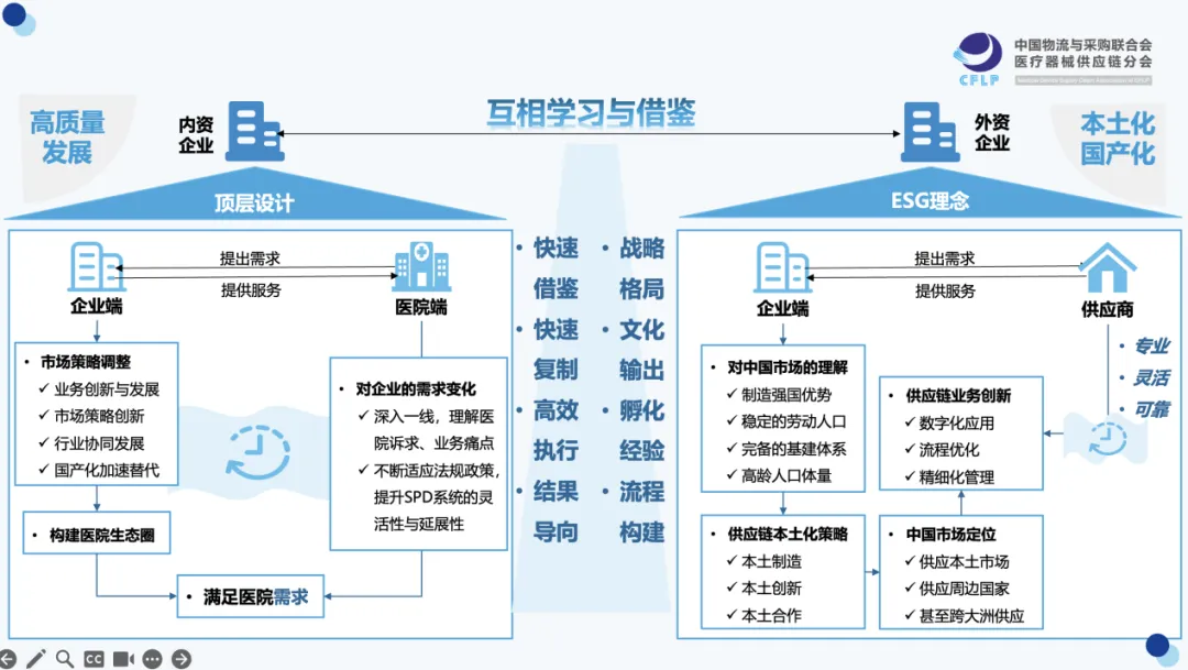 医疗器械供应链产业上中下游不断践行数字化理念,通过软件赋能硬件,实现线上线下联动发展。大幅提升了医疗器械供应链服务体系的运营效率,促进医疗器械供应链业务体系的系统化、集成化发展,进而带动人才专业素养及企业专业化运营水平的提升,从而不断反哺、赋能行业,引领行业走向专业化发展道路。