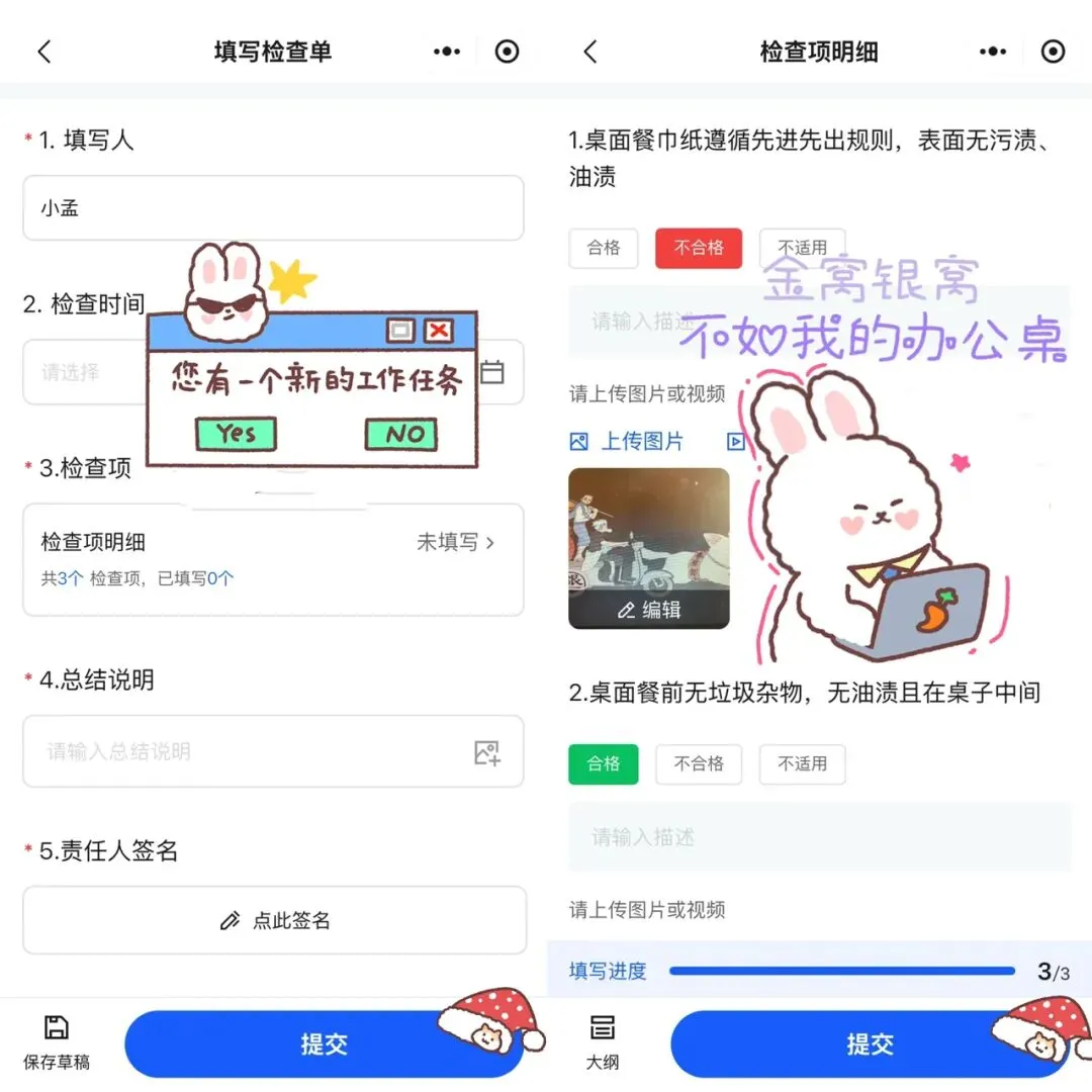 比如冰箱温度必须拍照(带时间地点水印),消毒记录必须上传 —— 检查结果全程留痕,