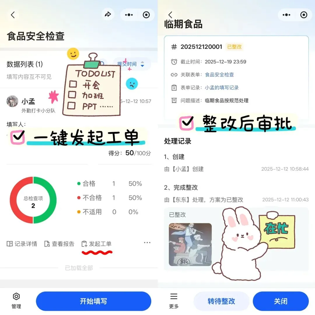 有问题直接生成整改工单,指定人限时解决,所有店的品质 “锁死” 一个标准!