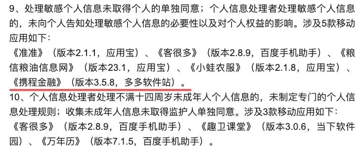 更令人担忧的是,携程在数据合规方面的“前科”不少。国家计算机病毒应急处理中心曾多次通报携程金融App存在“未充分告知用户个人信息处理情况”、“未经用户同意向第三方传输敏感信息”等数据滥用问题。
