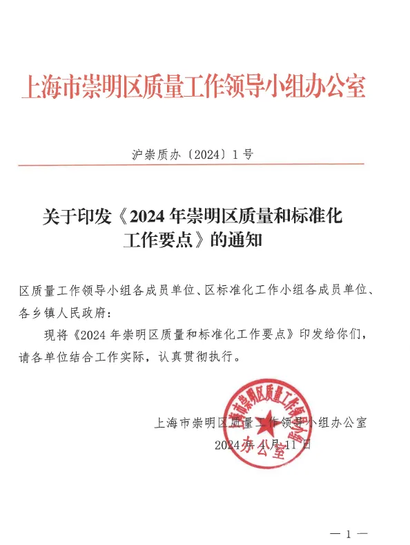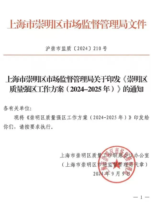 制定年度质量和标准化工作要点,发布《崇明区质量强区实施方案》明确崇明区质量强区建设总体思路、主要任务、时间节点及责任分工,构建质量共治格局。