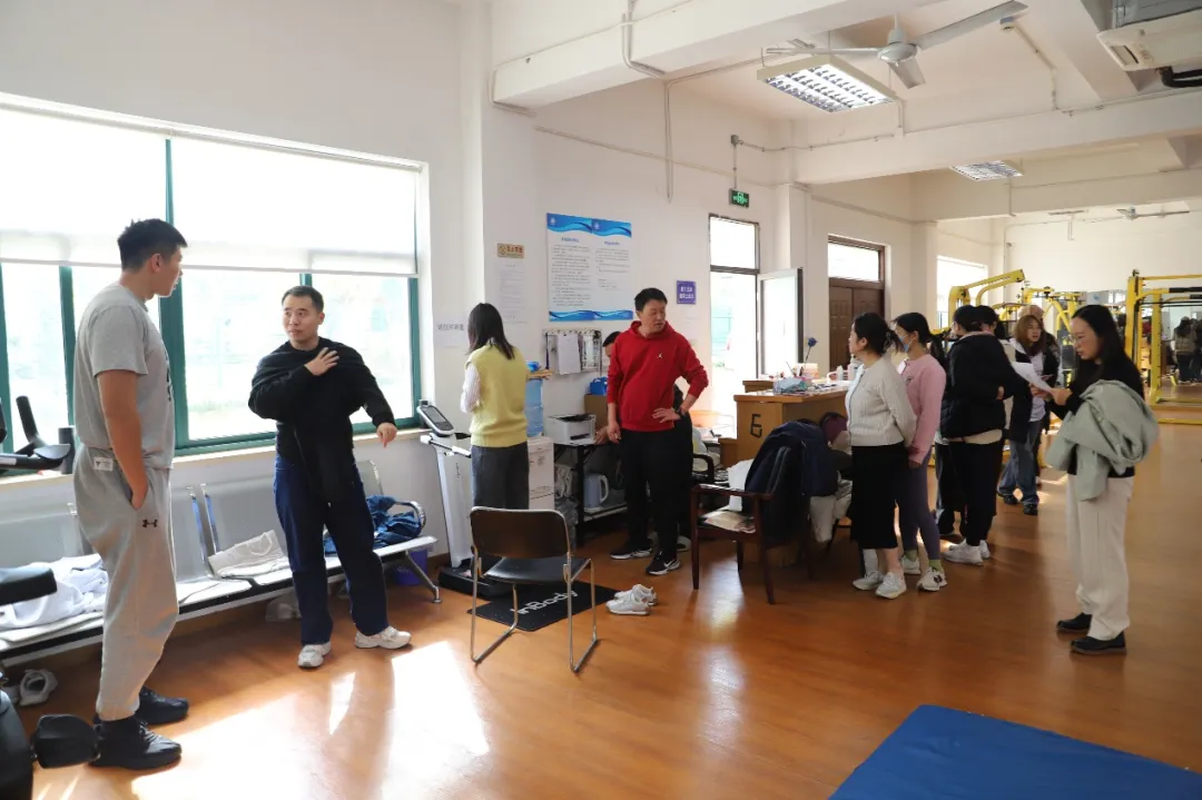 为了帮助老师们更好地通过针对性训练改善健康状况,刘老师与黄老师根据检测结果,从器械训练的动作示范到日常饮食的营养搭配,为每位参与者定制了个性化运动与保健方案。“如果没有哑铃的话,炒菜的时候多颠颠勺也是一种锻炼方式!”两位老师细致的指导让教职工们掌握了更具针对性的健康管理方法,生动幽默的讲解更让老师们不时爆发出阵阵笑声。