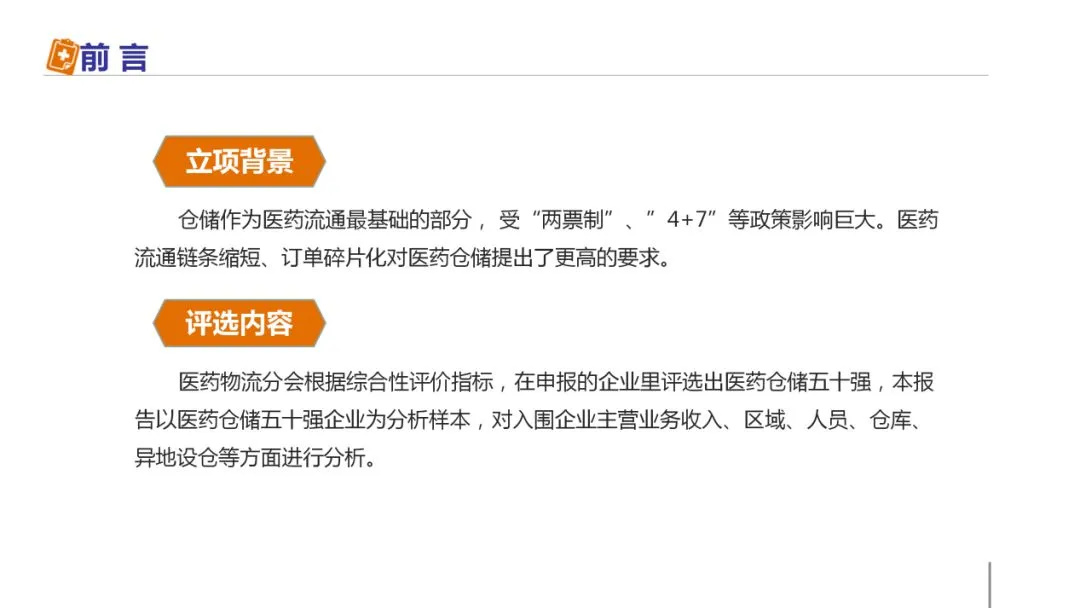 从满仓率统计结果来看,大部分企业满仓率60%-80%,满仓率达到90%的仅4家,还有15家企业满仓率不足60%,说明医药仓储资源尚未得到充分利用,未来行业内仍需要进一步进行仓储资源整合,实现医药供应链集约化发展。