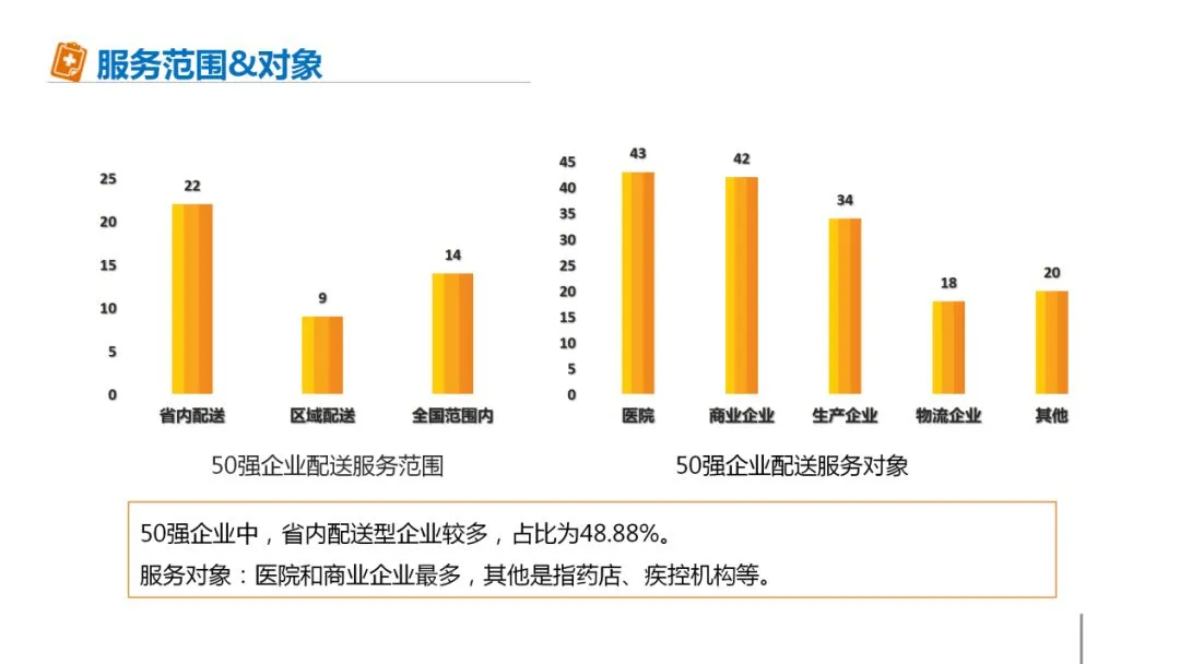 从仓储企业的地域分布来看,中东部企业较多,这与我国医药企业地域分布基本一致。