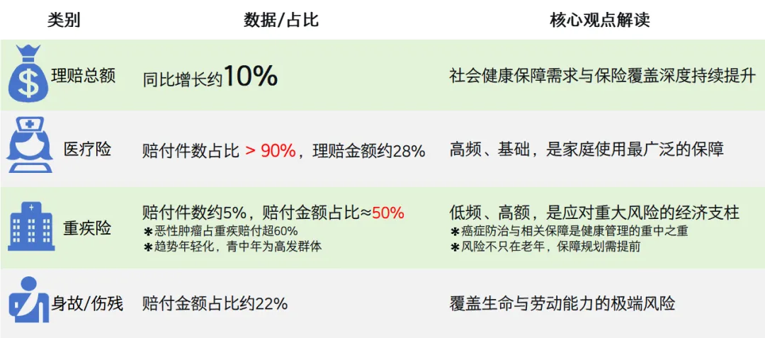 2025年的理赔数据显示,健康风险保障需求持续增长,理赔结构特征稳定。