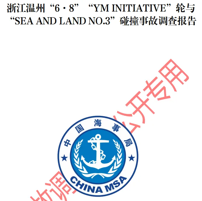 2025年12月30日,交通运输部海事局网站发布《浙江温州“6·8”“YM INITIATIVE”轮与“SEA AND LAND NO.3”碰撞事故调查报告》。