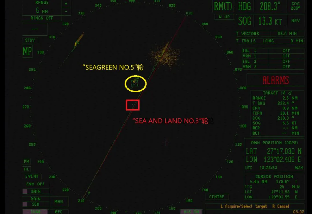 “YM INITIATIVE”轮雷达首次探测到“SEA AND LAND NO.3”轮