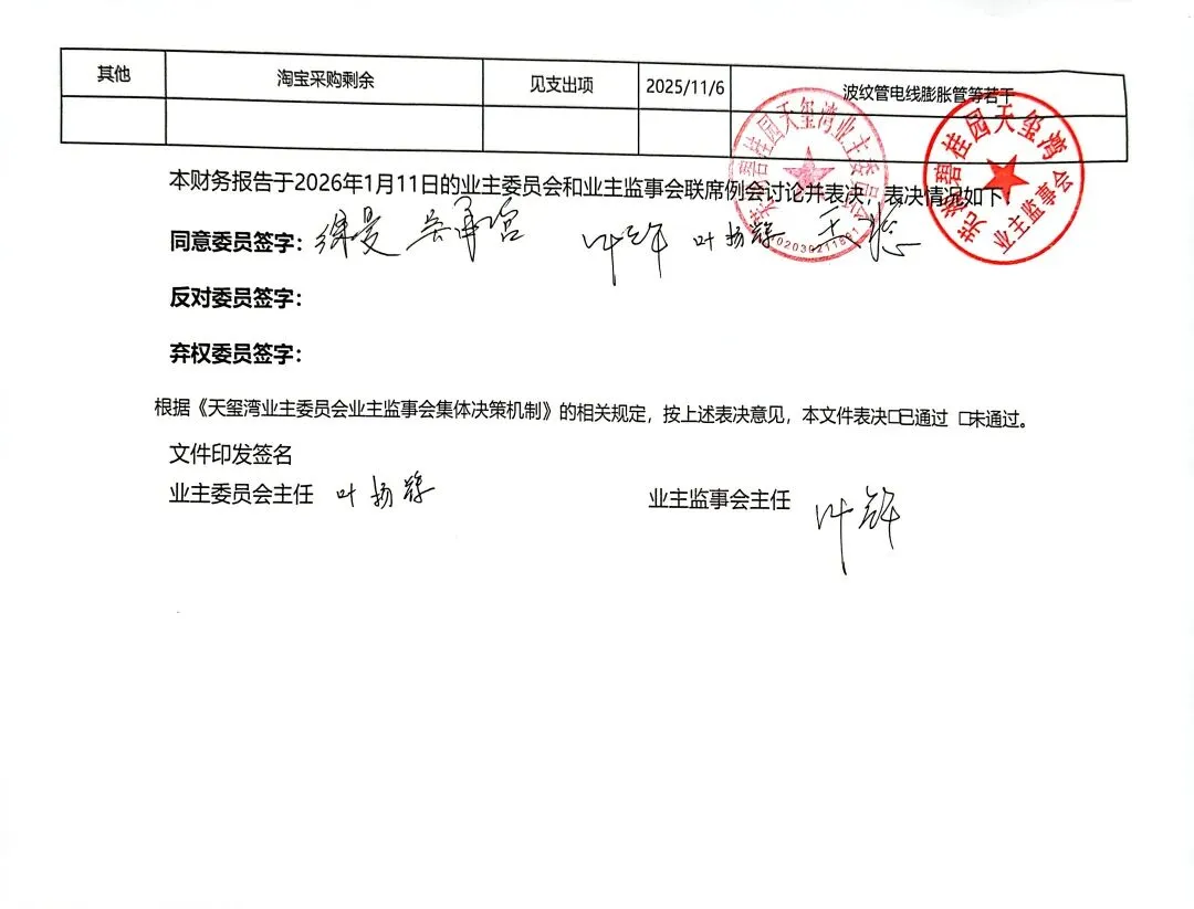 本表已经过天玺湾业主委员会和业主监事会审议确认无误。