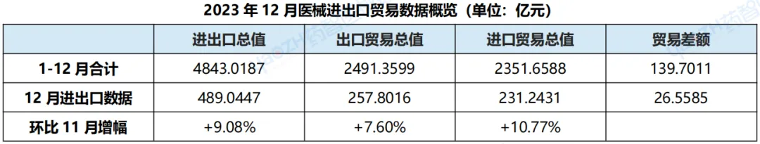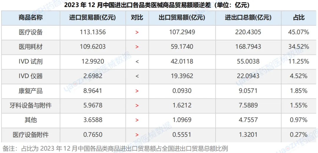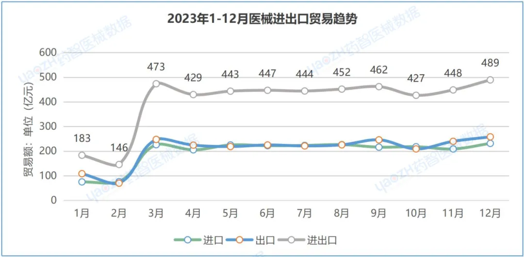 1、2023年,中国医械进出口贸易详情