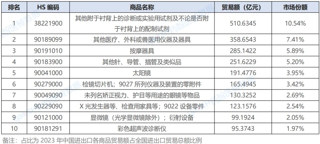 2、2023年中国医械进出口贸易额排名前十各商品信息详情