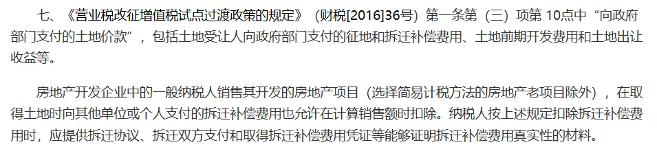 文件很明确,“支付的土地价款”包括三部分内容:征地和拆迁补偿费用、前期开发费用、土地出让收益,文件列明的可扣除部分,并未包含契税。