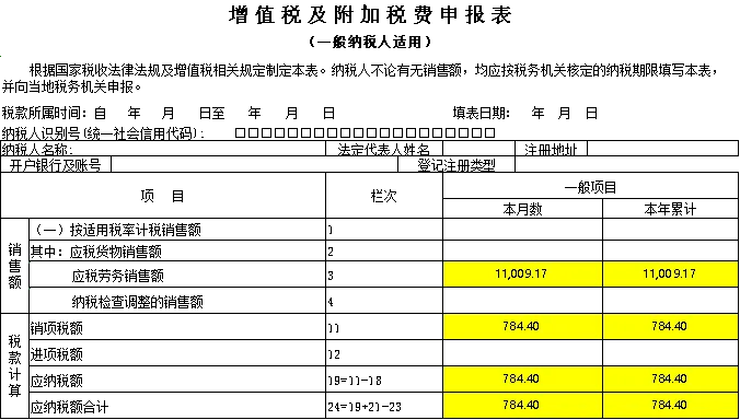 3. 填写增值税及附加税费申报表(主表)